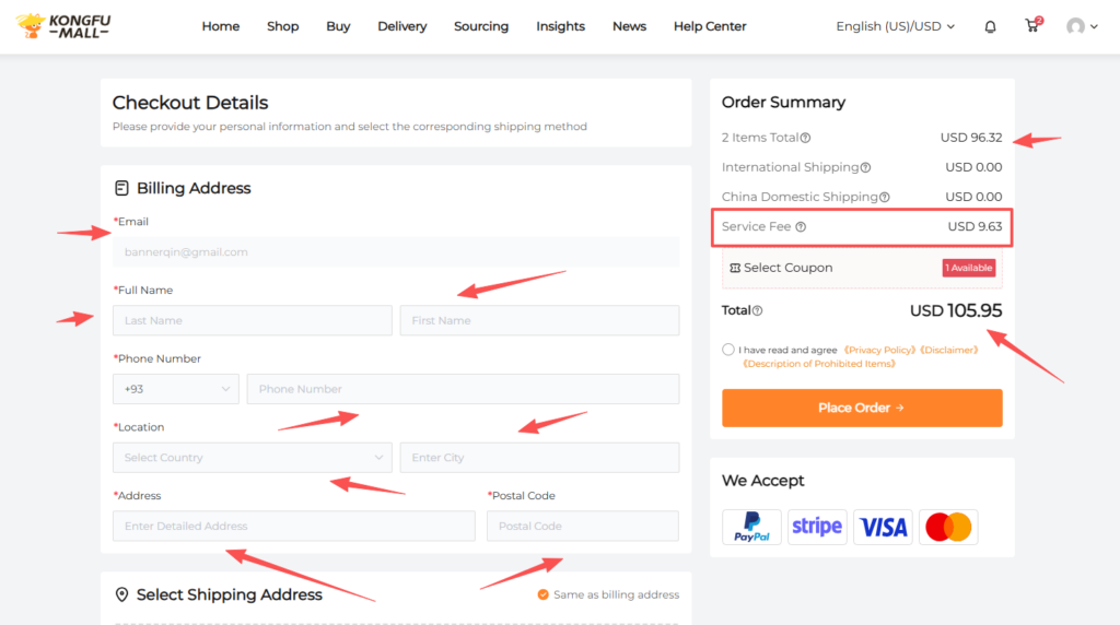 How to place an order on KongfuMall to complete your purchase