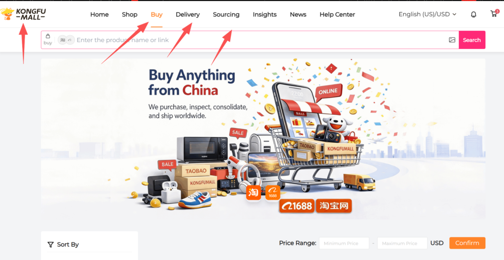 KongfuMall describes itself as a platform connecting global buyers with shopping, purchasing, logistics, and sourcing in one workflow. Its public content also explains that users can buy from Taobao, Pinduoduo, and 1688 overseas, and that the Sourcing function is specifically relevant when a product does not fit neatly into a direct buying route.