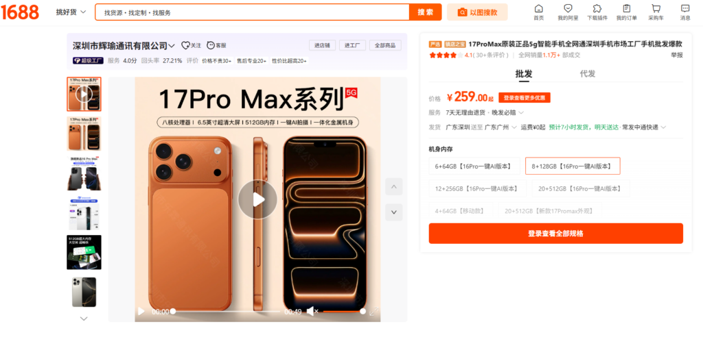 Buyers browse 1688 normally and select the product they want to purchase. Once the product is chosen:
