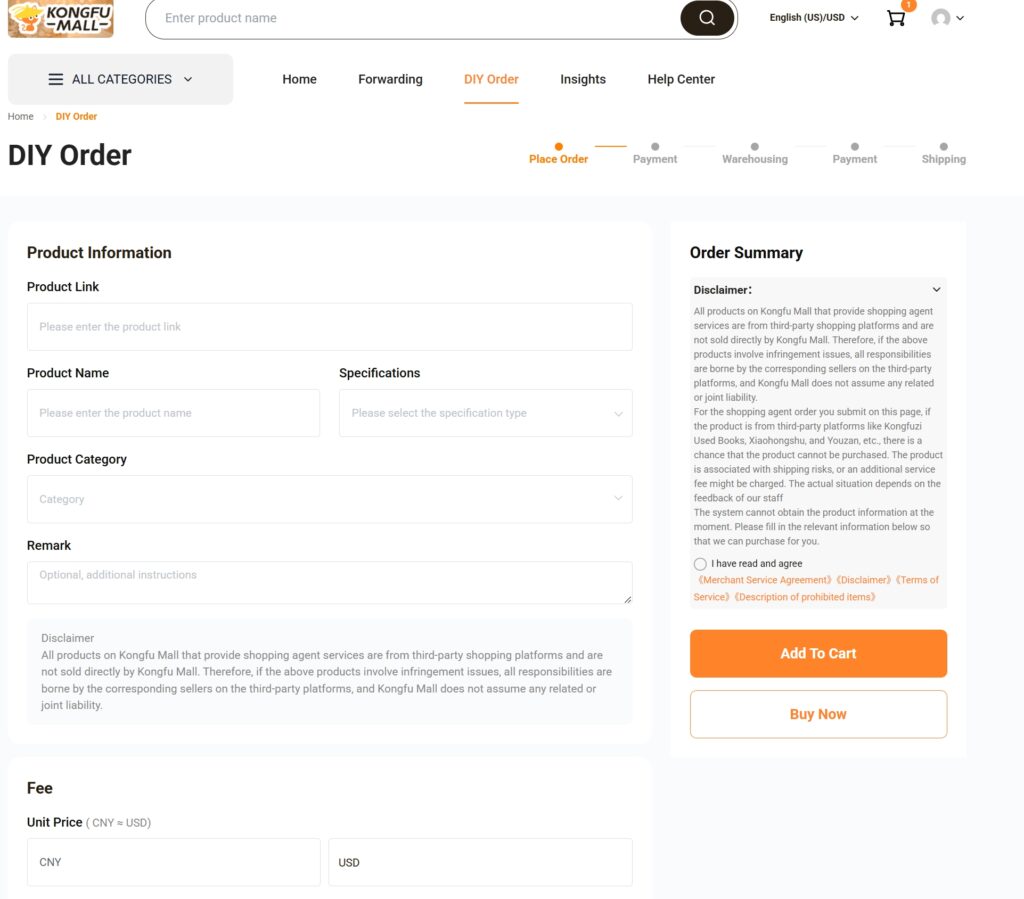 KongfuMall acts as the gateway to China's largest e-commerce ecosystem. Instead of navigating between different apps or sellers, users submit a product link from Taobao, 1688, or Pinduoduo, and KongfuMall handles everything.