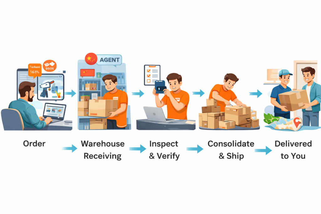 A purchasing agent helps you buy + verify + manage issues, then ships. A forwarder mainly ships items you already bought. That distinction matters because inspection and issue handling happen before international shipping.